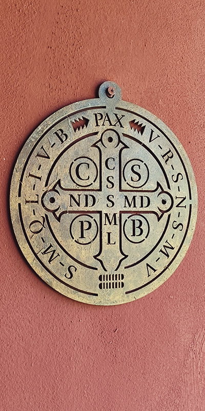 Medallón de San Benito, hierro con pátina de oxido o negro.